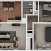 - Room List: Living Room, Bedroom 2, Kitchen, Bedroom 1