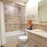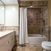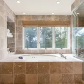 • Room Description: Travertine tile, tub/shower