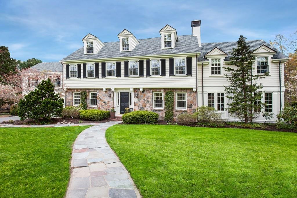 This exceptionally updated and expanded colonial is set on over an acre of land and conveniently located in one of Wellesley's most desirable neighborhoods. Custom-designed for entertaining, the property is flooded with natural light and offers the utmost privacy. The main level of the home features an expansive chef's kitchen with walk-in pantry and a fireplaced family room with oversized windows - both overlooking the lush backyard & expansive patio w/ fireplace. Elegant living & dining rooms, imported mahogany paneled study, sun room w/ radiant heat, butler's pantry, powder room and a large mudroom with custom built-ins complete the first floor. The second floor offers a serene master suite with vaulted ceiling, 5 generous bedrooms - all en-suite - a large laundry room w/ 2 sets of washers / dryers, a private office with custom built-ins, and a stunning balcony overlooking the spectacular property. The third floor includes a guest/au pair suite w/ bedroom, full bath, study/bonus space and cedar closet. There is also a finished lower level with recreation space for all ages. Quiet Wellesley Hills neighborhood with close proximity to train, commuting routes, top-rated schools and shops.