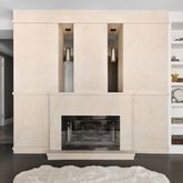 A spacious entry gallery, bordered by a double-sided fireplace, leads to a sprawling, sun-filled open living room and dining room. A wall of windows gives the expansive area additional dimension. The other end of the entry gallery's distinctive, double-sided fireplace, borders a dramatic 42-foot terrace, accessible from both the living room and master bedroom.