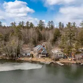 - Lot Features: Landscaped, Level, Mountain View, Pond, Pond Frontage, Sloping, View, Water View, Waterfront, Near Skiing