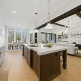 - Interior Features: Bathtub/Shower Combination, Beamed Ceilings, Built-in Features, Pantry, Ceiling Fan(s), Chandelier, Coffered Ceiling(s), Crown Molding, Eat-in Kitchen, Entrance Foyer, Granite Counters, High Ceilings, Kitchen Island, Kitchen/Dining Room Combination, Living/Dining Room Combination, Master Downstairs, Quartz Counters, Recessed Lighting, Tray Ceiling(s), Walk-In Closet(s), Walk-In Shower, Water Closet, Wet Bar