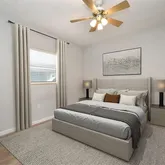 - Interior Features: Ceiling Fan(s), Living Room/Dining Room Combo, Primary Bedroom Main Floor, Solid Surface Counters, Stone Counters, Thermostat, Window Treatments