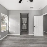 - Interior Features: Ceiling Fan(s), Eating Space In Kitchen, High Ceilings, Kitchen/Family Room Combo, Living Room/Dining Room Combo, Open Floorplan, Primary Bedroom Main Floor, Solid Wood Cabinets, Thermostat, Walk-In Closet(s)