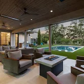 - Exterior Features: Attached Grill, Covered Patio/Porch, Fire Pit, Gas Grill, Rain Gutters, Lighting, Outdoor Living Center, Private Yard, Storm Cellar