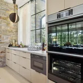 - Appliances: Built-in Gas Range, Built-in Refrigerator, Commercial Grade Vent, Dishwasher, Disposal, Electric Oven, Gas Cooktop, Ice Maker, Microwave, Convection Oven, Double Oven, Plumbed For Gas in Kitchen, Warming Drawer