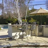 Tucked away on a quiet cul-de-sac, this inviting home blends comfort, functionality and effortless entertaining. Upon entry you are welcomed into a bright living room featuring a custom bar area that flows out to one of the patios and yard. The well-appointed kitchen opens to the family room that is highlighted with a fireplace and leads out to the backyard. A versatile flex space, between the family room and dining area, offers the perfect setting for a home office, study or play room. A spacious...Tucked away on a quiet cul-de-sac, this inviting home blends comfort, functionality and effortless entertaining. Upon entry you are welcomed into a bright living room featuring a custom bar area that flows out to one of the patios and yard. The well-appointed kitchen opens to the family room that is highlighted with a fireplace and leads out to the backyard. A versatile flex space, between the family room and dining area, offers the perfect setting for a home office, study or play room. A spacious bedroom, three-quarter bath and laundry room complete the thoughtfully designed first level. Upstairs the primary bedroom features an ensuite bathroom with a soaking tub and walk-in closet. Two additional bedrooms and a full hall bath are on the second level. Enjoy the indoor-outdoor lifestyle this home offers with a true entertainer's backyard featuring multiple patios and grassy areas, a sparkling pool and spa, a built-in BBQ, a fire pit and a horseshoe pit. This design allows for your own private oasis for relaxation and memorable gatherings. Updates in 2026: new pool heater, new carpet, new lighting fixtures in all bathrooms, kitchen and dining room and freshly painted interior. Additional amenities include: plantation shutters on most of the windows, an attached 450 sq. ft., 2-car garage with direct access to the home, solar panels and central air and heat.