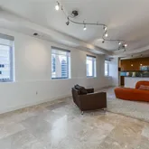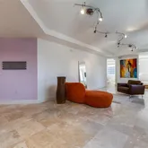 - Flooring: Travertine Stone, Wood