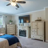 - Light-Filled Living Spaces: Enjoy the large living room featuring an inset for a big-screen TV, canned lighting, a wood burning fire place with stunning masonry accents and side shelving for your decor - Gourmet Kitchen: Cook and entertain in style with a spacious island and stools, abundant wood cabinetry, a modern chic range with a separate oven, and a butler's service area. - Gourmet Kitchen: Cook and entertain in style with a spacious island and stools, abundant wood cabinetry, a modern chic range with a separate oven, and a butler's service area - Formal Living Room is the perfect additional space for entertainment, your own hideaway, playroom, or just an additional area to spend time with friends and family! - Elegant Dining Room: Featuring a trayed ceiling, perfect for hosting gatherings. - Elegant Dining Room: Featuring a trayed ceiling, perfect for hosting gatherings - Master Suite Retreat: Relax in the master bedroom with plush carpet, leading to a luxurious and upgraded en-suite bathroom that will make anyone jealous! Equipped with his and hers bathroom sinks, plenty of counter and cabinetry space, a garden tub, separate large shower with plenty of space for two, a double seat, and ample space for comfort! - Spacious Secondary Bedrooms: Two generously sized bedrooms with large walk-in closets and a well-appointed secondary bathroom featuring an oversized bathtub. One of the secondary bedrooms has a custom organized closet system, perfect for keeping your things organized! Outdoor Paradise: