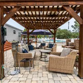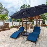 - Oversized Pavered Patio: Perfect for entertaining, with two stunning brick pavered waterfalls and accent landscape walls - Gazebo Retreats: Two gazebos, one with a high-end hot tub and another with a spacious seating area ideal for starry nights. - Gazebo Retreats: Two gazebos, one with a high-end hot tub and another with a spacious seating area ideal for starry nights - Fire Pit