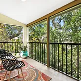 Step inside this recently remolded unit to a lofty, light-filled open floor plan. The renovated kitchen is spacious and bright with all new stainless-steel appliances, and granite countertops. A huge sun-dappled living room with vaulted ceilings and transom windows, shares space with a substantial dining nook. Large sliding glass doors open out to a shady screened in porch framed in by old-growth live oaks and cabbage palms. The generous primary suite features a beautifully refreshed bath and a tranquil view of the surrounding greenery, while the second bedroom provides the perfect space for guests with an adjoining full bath, or a serene home office.