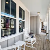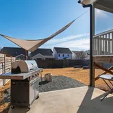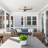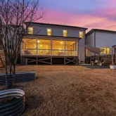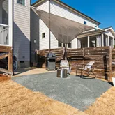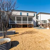 The extended screened porch spans nearly the entire width of the home, creating a true outdoor living room. Oversized sliding doors fill the southern-facing interior with natural light while connecting the gourmet kitchen and family room to a private backyard retreat. The fully fenced yard sits on one of the deepest lots on the street and features multiple gathering spaces, garden beds, and room for a future pool. A rear gate opens directly to the community walking path, providing privacy and easy access to Wendell Falls' signature amenities, including the farmhouse pool, café, parks, trails, and playgrounds.