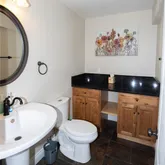 sinks. Additional bedroom has vaults, ceiling fan, walk-in closet and full bath. Nicely finished