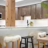 - Room Description: Designed for entertaining with an open layout, oversized island, updated appliances, sleek cabinetry, beverage fridge, and bar seating.