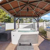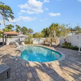 Adorable beach house with private pool, two primary en-suite bedrooms (one on first floor, one on the second), two laundry rooms (one up, one down) - Closer to the beach than some homes on the south side of 30A! Your guests will enjoy the hot tub gazebo, covered outdoor dining and private pool. Many upgrades have been added to the interior and exterior of this home. Hungry? Choose from Shades 30A, Donut Hole, Ghost Crab Pizza, Big Bad Breakfast or any of the dining, shopping and entertainment options in 30Avenue or Rosemary Beach! Approximately 1,788 feet to Inlet Beach Regional Access. This beach access has seasonal lifeguards, parking, baths and water fountain.