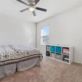 - Interior Features: Ceiling Fan(s), High Ceilings, Living Room/Dining Room Combo, Open Floorplan, Primary Bedroom Main Floor, Solid Surface Counters, Split Bedroom, Stone Counters, Thermostat
