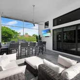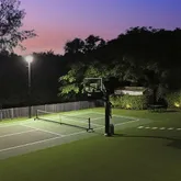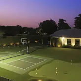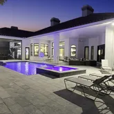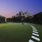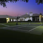 - Exterior Features: Auto Sprinkler, Covered Patio, Custom Lighting, Fence, Lake/Canal Sprinkler, Open Patio, Screened Patio, Summer Kitchen, Tennis Court, Zoned Sprinkler