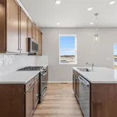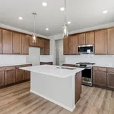 - Room Description: Luxury vinyl plank floor, slab quartz counters & island, stainless steel appliances, neutral tones, open to great room & dining