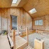 - Room Description: Main house-vaulted ceilings, oversized wood-framed casement windows, full of natural light, sliding doors to back deck
