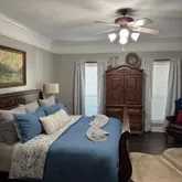 Discover this exceptional 3,750 sq ft two-story home offering 5 bedrooms with the potential for a 6th, 4 full baths, and an impressive list of amenities rarely found in one property. Inside, you'll love the extra-large family room, immaculate kitchen featuring granite countertops, walk-in pantry, gas stove, double oven, and an optional refrigerator, plus a beautiful fireplace that creates a warm centerpiece for the home. The layout includes 3 bedrooms upstairs and 2 bedrooms downstairs. A former bedroom has been converted into a spacious walk-in closet but can easily be restored, giving you the flexibility of a true 6-bedroom floor plan. Storage is abundant throughout, with ample space both upstairs and down, along with an extra-large utility area that makes household tasks a breeze. Outside, this property continues to impress. Set on 3 manicured acres with approximately 22 pecan trees, it features a sparkling swimming pool, hot tub, tranquil pond, workshop, and covered parking for up to 6 vehicles. The grounds are beautifully maintained, offering the perfect blend of space, privacy, and outdoor enjoyment. This is truly a must-see property—well-priced and packed with amenities you won't find in most homes. Contact your Realtor today to schedule a personal tour!