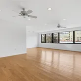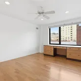 Welcome to this beautifully designed two-bedroom, two-bath cooperative residence located in a contemporary building at the center of it all. Perfectly positioned near universities, the Medical Center, shops, cafés, and restaurants, this home offers both convenience and comfort in one of the area’s most desirable locations. Natural light fills every room through expansive walls of windows, creating an open and inviting atmosphere throughout the apartment. The living space features custom built-in storage, including elegant bookcases and a built-in desk—ideal for today’s flexible lifestyle. A second built-in desk and storage unit in the second bedroom provides additional functionality for work, study, or guests. The galley kitchen is thoughtfully designed with stainless steel countertops, excellent workspace, and ample storage. The spacious primary bedroom includes an en-suite bath, a built-in chest, and generous closet space. Wood floors run throughout the home, complemented by abundant recessed lighting and ceiling fans in every room, offering comfort and style year-round. Residents enjoy an impressive array of building amenities, including 24-hour valet parking, beautifully maintained rooftop gardens, a fitness room, guest accommodations, laundry facilities, and two private storage lockers. A wonderful opportunity to enjoy light-filled living, smart design, and exceptional amenities in a premier Civic Center location.