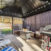 - Exterior Property Features: Fire Pit, Gas Grill, Mailbox, Rain Gutters, Patio, Attached, Driveway, Garage, Garage Door Opener, Chain Link, Blinds, Screens, Back Yard, Front Yard, Near Public Transit, Near School, Near Shops, Part Wooded, Private, Secluded, Views