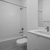 Venture to the lower level to discover two serene bedrooms and a versatile den, perfect for a media room or home office. The luxurious primary suite is a sanctuary, with a spa-like ensuite boasting a walk-in shower, double sinks, and heated floors, alongside a generous walk-in closet and reach-in double length closet. Sliding doors off the bedroom allow you access to your private terrace complete with flagstone pavers. At the front of the home, you’ll find the second spacious bedroom featuring a serene ensuite bathroom. The washer and dryer are located on this level.