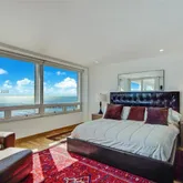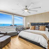 Spacious primary suite with panoramic water views