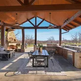 - Exterior Features: Attached Grill, Barbecue, Built-in Barbecue, Covered Patio/Porch, Fire Pit, Gas Grill, Rain Gutters, Lighting, Outdoor Grill, Outdoor Kitchen, Outdoor Living Center, Private Entrance, Private Yard, Storage