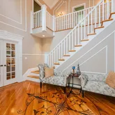 - Amenities: Cathedral/Vaulted/High Ceiling, Central Vacuum, Chandelier, Chefs Kitchen, Colonial, Crown Molding, Double Vanity, Eat in Kitchen, Entrance Foyer, Formal Dining, Hardwood Floors As Seen, High Ceilings, Kitchen Island, Laundry Room, Open Floorplan, Patio, Porch, Primary Bathroom, Public, Quartz/Quartzite Counters, Security System, Soaking Tub, Tray Ceiling(s), Walk In Closet, Wet Bar, Wood Burning