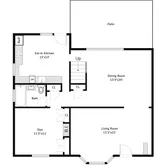 - RoomDescription 1: LIVING ROOM/ DINING ROOM, OFFICE / BEDROOM, HALL BATH, EAT IN KITCHEN/ DOOR TO PATIO, YARD & GARAGE.