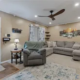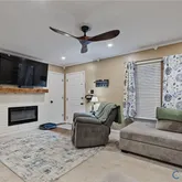 - Interior Features: Beamed Ceilings, Ceiling Fans, Fireplace, Bath In Primary Bedroom, Main Level Primary, Recessed Lighting, Solid Surface Counters