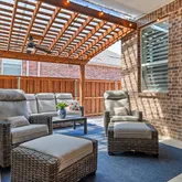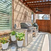 - Exterior Features: Attached Grill, Built-in Barbecue, Covered Patio/Porch, Rain Gutters, Lighting, Outdoor Kitchen, Outdoor Living Center, Private Yard