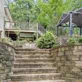 - Property Facts: 4 BR, 3 Baths, approx. 2400 sq. ft above grade; additional 700 below grade finished sq. footage. Main level has kitchen, laundry, pantry, breakfast area, dining rm, great rm, Master BR and huge master bath. Upstairs includes 1 bath, 2 BR & a loft overlooking grt rm; lower level includes 1 BR, 1 bath, bonus rm w/kitchen cabs and large exercise room. Outside: gated yard, gazebo, sunken hot tub, multiple decks, outbuilding, well house., 2 lower parking pads and a large, level upper parking area.