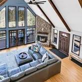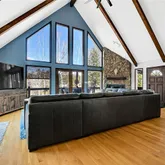 - Room Description: Pellet stove, vaulted ceilings, and large windows