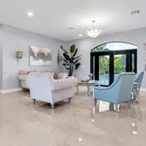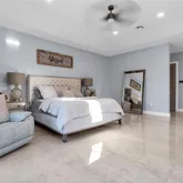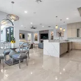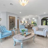 The open-concept family room...Discover luxury, privacy, and lifestyle at this exceptional residence on a lush corner acre in Redland–Homestead, designed for comfort and outdoor living. This custom single-level home offers 4 spacious bedrooms and 3.5 bathrooms, including a large primary suite with dual walk-in closets and a spa-inspired bath with his-and-hers vanities and a walk-through shower. A thoughtful split-bedroom layout, soaring ceilings, and 24x48 porcelain tile flooring elevate the interior.