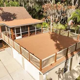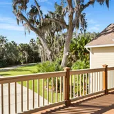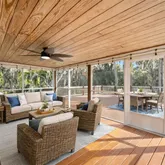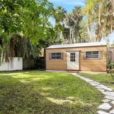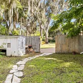 The secondary bedrooms are generously sized and share a fully updated bath with a furniture-style gray vanity topped with marble, along with a tub/shower combination accented by sleek gray subway tile and oversized shower heads. The owner’s suite and guest bedrooms open to a screened lanai and an impressive 725-square-foot rooftop deck, offering a peaceful retreat to relax while taking in tranquil wooded and lake views. Double glass doors lead to an open-air patio paved with red brick pavers overlooking a serene backyard filled with lush Old Florida landscaping. A cobblestone path guides you to a storage shed with a steel roll-up door, electricity, and full fencing—ideal for storing jet skis, trailers, or a john boat. The oversized two-car garage (26’ x 25’) easily accommodates large vehicles, while the extended driveway provides ample guest parking. Located in one of the most captivating areas of Stone Island, this high-and-dry homesite has a clean history and has never flooded. Stone Island is a golf cart–friendly community offering private roads, a boat ramp with access to Lake Monroe & the St. Johns River, tennis and pickleball courts, equestrian stables, a community pavilion, firepit, playground, and easy access to nearby trails. Whether enjoying sunrise fishing or sunset cruises, boating enthusiasts will appreciate convenient access to Florida’s iconic waterways. This tranquil island oasis offers the perfect balance of privacy and convenience, just minutes from shopping, dining, and a scenic drive to I-4 along the north shore of Lake Monroe