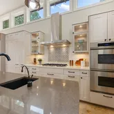 - Appliances: BarFridge, DownDraft, DoubleOven, ElectricWaterHeater, Disposal, Microwave, PropaneCooktop, RangeHood, StainlessSteelAppliances, TrashCompactor