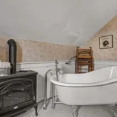 Outdoor features abound, including a 300 sq. ft. front porch, a sunroom with a private exit and new composite platform, a detached garage, an upper barn with new access stairs, and a large, flat lot above the house offering endless possibilities. Whether you’re sipping coffee on the terrace, enjoying the mature landscaping, or cozying up by the fire, this home offers unmatched character, charm, and peace of mind. Truly a rare opportunity to own a piece of history—with every modern comfort.