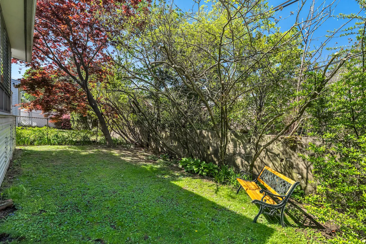 Outdoors, enjoy a charming front lawn with colorful bushes and a fenced backyard surrounded by lush greenery, offering both privacy and a serene setting. The screened porch is perfect for morning coffee or hosting gatherings with family and friends.