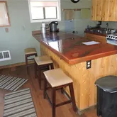 - Interior Features: Concrete Counters, Open Floorplan, Vaulted Ceiling(s), Wood Burning Stove