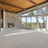 - Living Room Features: Cathedral/Vaulted, Deck Attached, Great Room, Open Beam Ceiling, View