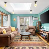 - RoomDescription 1: Cozy with skylight and sliding door to deck