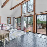 - Room Features: Balcony/Deck,Beams,Ceiling Fan,Sliders,Slate Floor