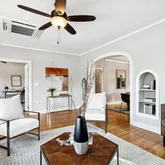 - Room Description: Arches, gas fireplace, natural light