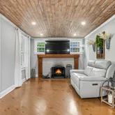 This beautifully redesigned Cape Cod blends timeless charm with thoughtful upgrades, offering the perfect mix of style and comfort. Taken down to the studs and rebuilt in 2019, the home was reimagined with a fresh layout, quality finishes, and standout details throughout. From the moment you arrive, the curb appeal shines with a striking emerald-green exterior, a welcoming front porch with wood pillars, and prairie-style windows. Step inside to find wide-plank pine floors, exposed beams, and a bright open-concept living and dining area. A cozy wood-burning stove adds warmth and character, while recessed lighting highlights the home’s unique craftsmanship. The kitchen is a showstopper with custom pine cabinetry, cement countertops, subway tile backsplash, pot filler, and a gas range with vent hood. Off the kitchen, a sunny den with sliding doors leads to the rear deck and backyard. The main level offers two bedrooms and a stylish full bath, while upstairs you’ll find two additional bedrooms and a second spa-like bathroom with a farmhouse sink and glass-enclosed shower. A sliding barn door provides access to bonus storage space, and the dry basement offers even more room for storage or hobbies. Major system updates from 2019 include: roof, HVAC, hot water heater, plumbing, electrical, windows, and deck — all ensuring peace of mind. This home is truly move-in ready and waiting for its next chapter. Don’t miss your chance to make it yours!