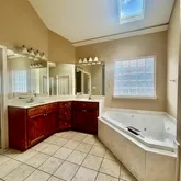- Interior Features: Breakfast Bar, Ceiling Fan(s), Crown Molding, Eat-in Kitchen, Entrance Foyer, Granite Counters, High Ceilings, Natural Woodwork, Open Floorplan, Pantry, Track Lighting, Walk-In Closet(s), Double Vanity
