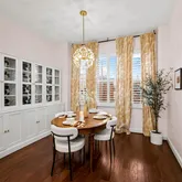 Hardwood floors flow throughout the entire home, complemented by tall ceilings and plantation shutters on every window that bathe the space in natural light while providing privacy.