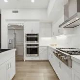 Additional highlights include luxury vinyl flooring throughout, custom wall treatments, automated window shades, LED energy efficient recessed lighting, whole-house water filtration system and two side-by-side parking spaces conveniently located near the elevator. The entire home has been thoughtfully designed.