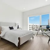The expansive living area is highlighted by soaring high-volume ceilings and dramatic glass windows that flood the space with natural light while framing stunning views. A first-floor bedroom provides ideal accommodations for guests or extended family, while a custom built-out den/office adds exceptional versatility to this highly upgraded luxury condominium.